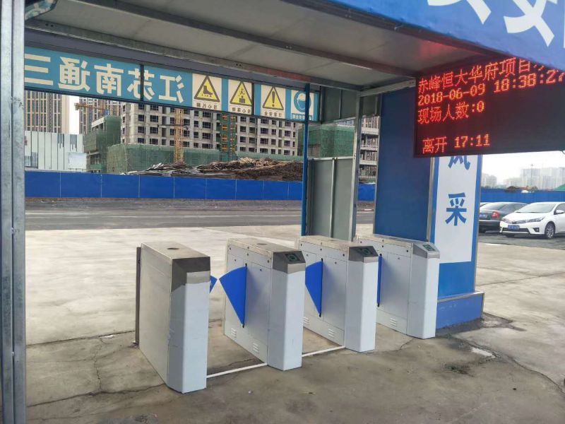 工地門禁系統在出入口處接入LED顯示屏。當人員進出刷卡或按指紋、人臉識別時,可實時的顯示通過人員姓名、工號,進場時間等,同時還可以顯示場內總人數、離開人數、工地里還剩下人數。當無人刷卡時,可設置在空閑時間,在LED屏幕上顯示歡迎詞、注意事項、施工進度等信息,顯示內容可自定義。